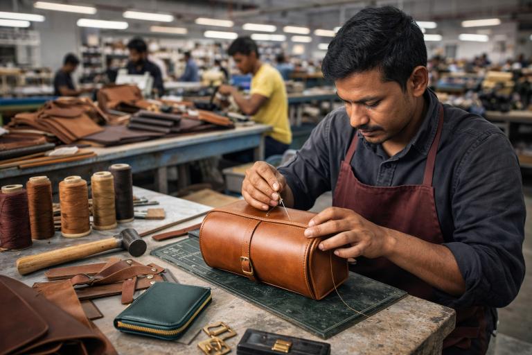 Years of hands-on expertise in leather goods manufacturing for international markets.In-House Production in India: