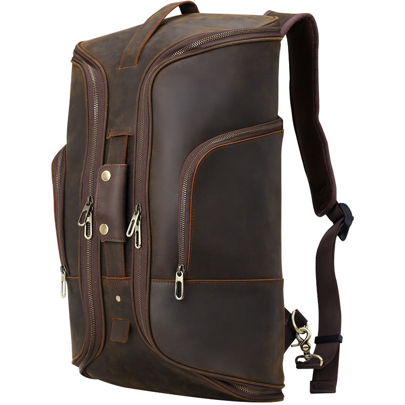Designed for versatility, this leather travel bag can be used as a duffle bag or backpack, offering flexible carrying options for modern travelers. Its timeless style and premium leather appeal to customers seeking durability, elegance, and practicality.