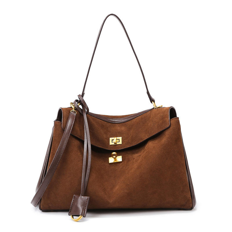 The structured gold turn-lock closure enhances both security and visual appeal, while the spacious interior makes this leather hobo bag ideal for everyday use. Its classic brown tone ensures broad market appeal across seasons, making it a strong addition to retail, boutique, and online storefronts.